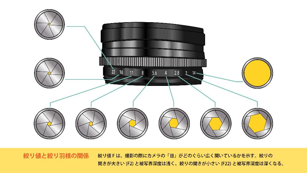 レンズの開口部を開いて大きくしたり、閉じて小さくしたりするのが絞りです。