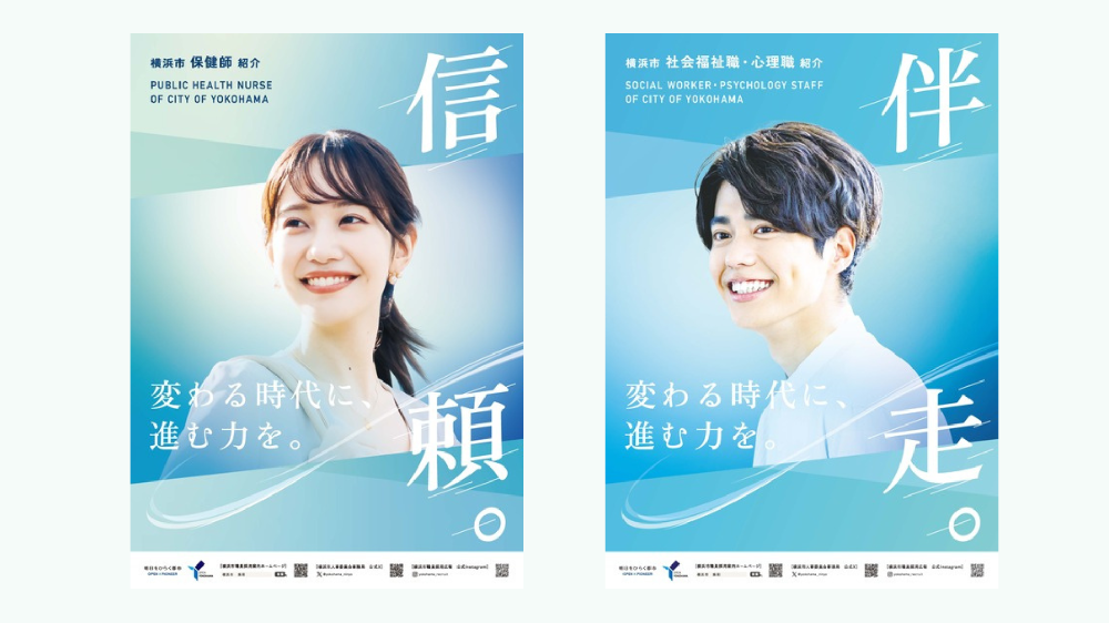 横浜市職種別 採用案内パンフレット・ポスターのデザイン制作を担当しました。